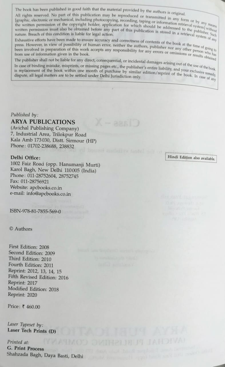 Used Book, CBSE, Arya Publications, Edition 2020, ISBN 9788178555690, Book id PID0020