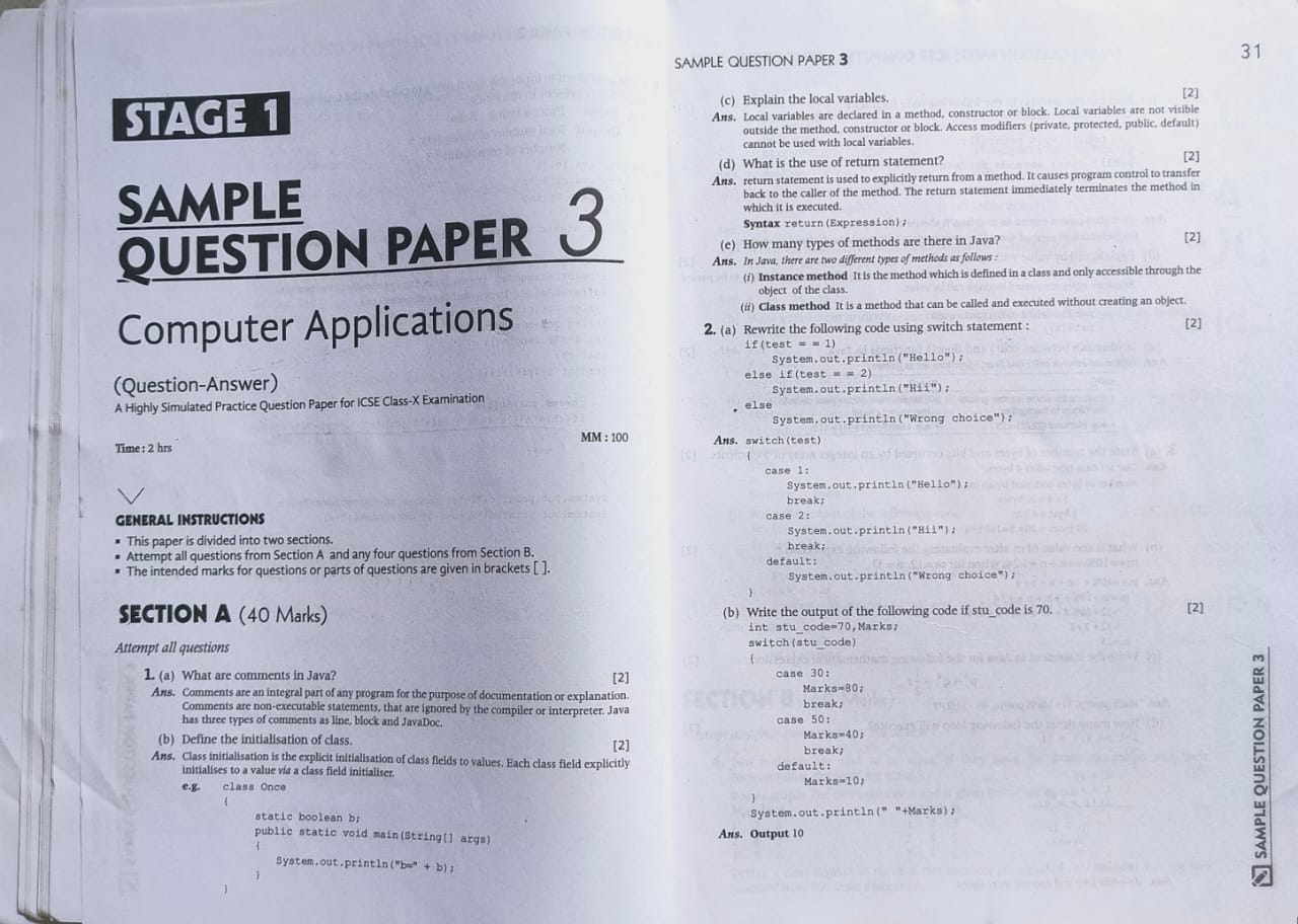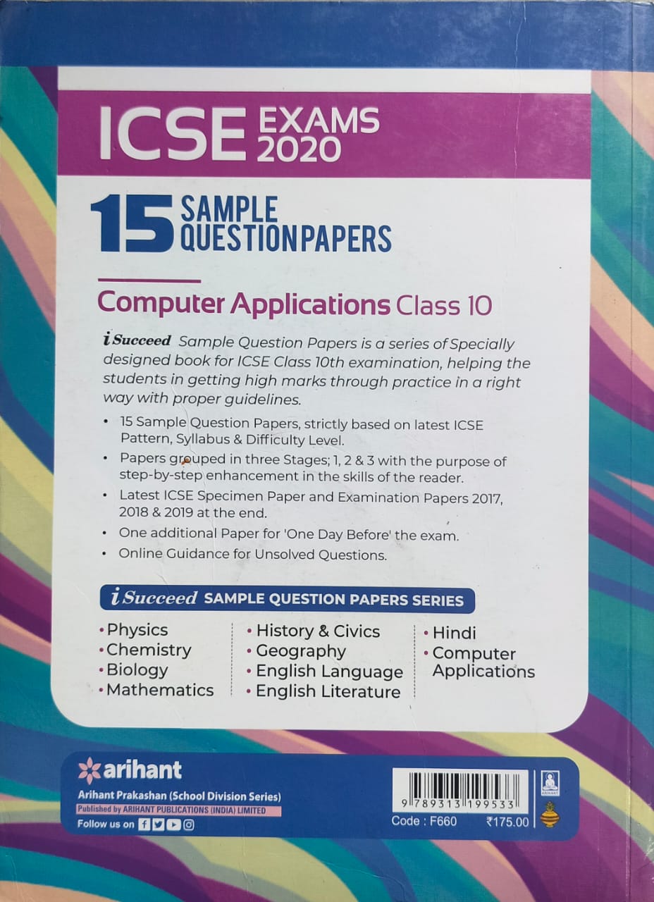 Arihant 10 Sample Question Papers, Computer Applications, ICSE Exams2020, class 10