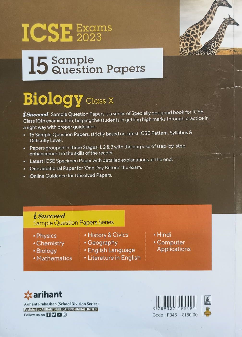 Arihant 15 Sample Question Papers, Biology, ICSE Exams2023, class 10